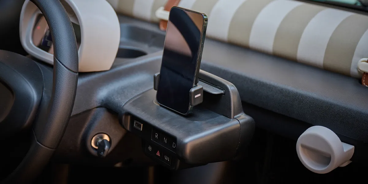 Nouvelle Topolino est équipée d'un compartiment pratique pour smartphone.
